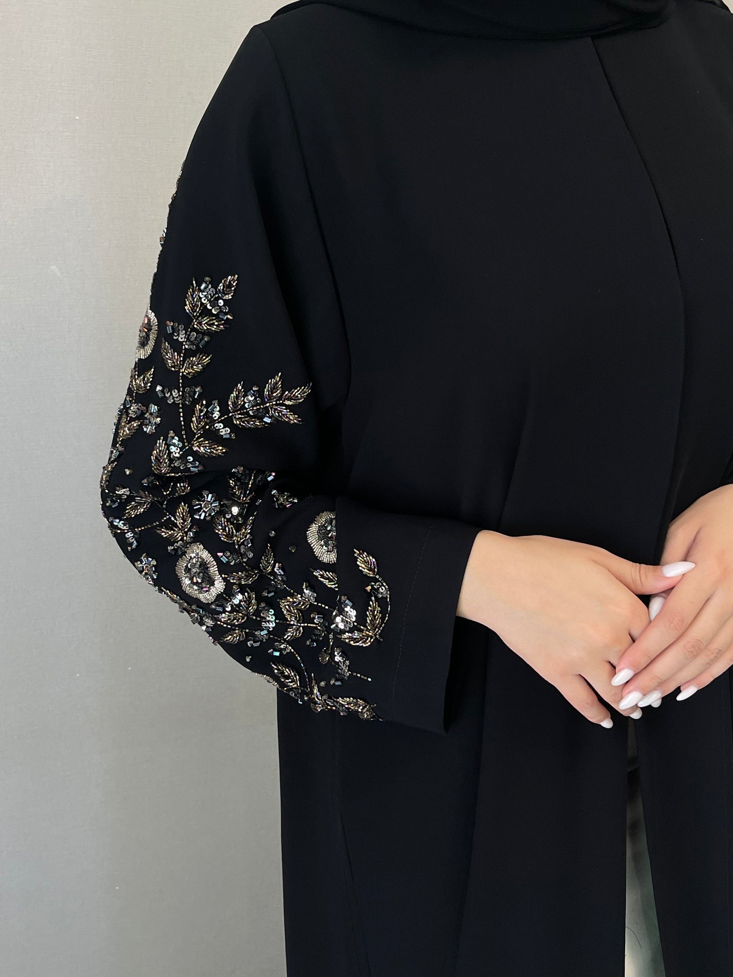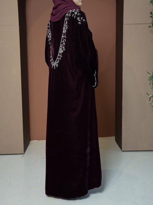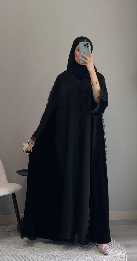 عباية مخمل بقصة الكم الفرنسي والشك الفاخر من الأمام والخلف