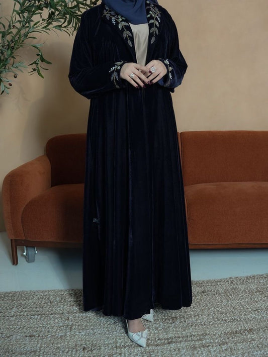 عباية مخمل بقصة الكم الفرنسي والشك الفاخر من الأمام والخلف